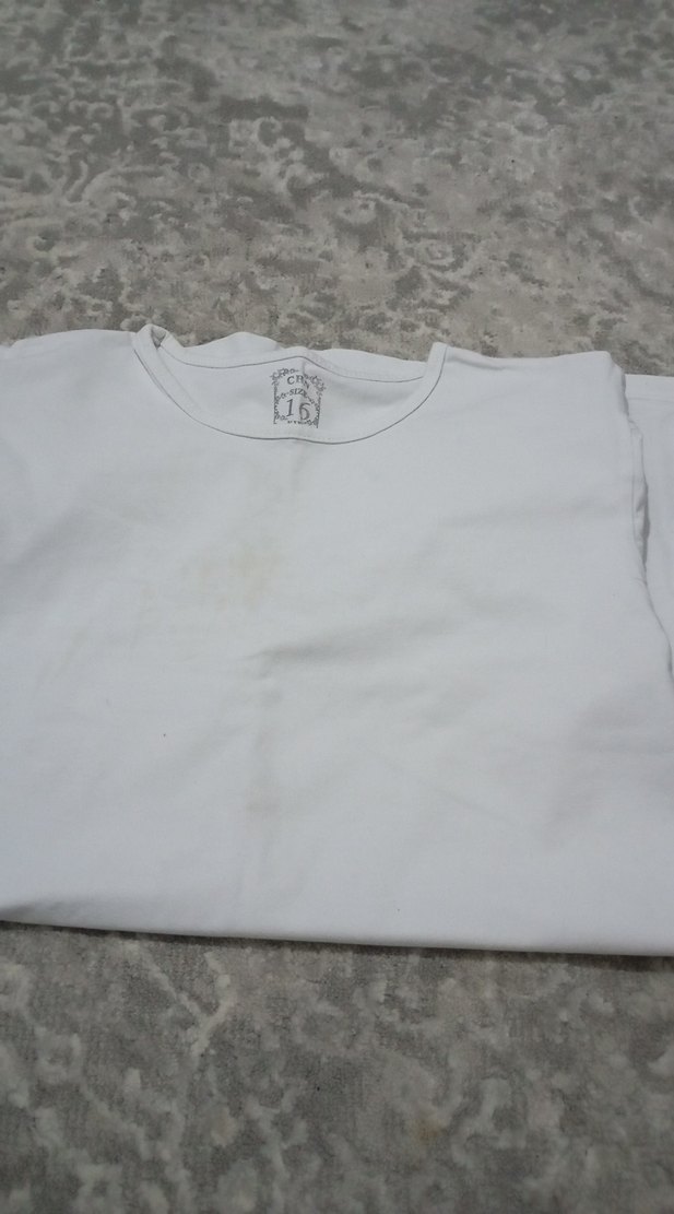 Yumuşak ve rahat kumaştan yapılmış, desensiz beyaz çocuk içlik tişörtü. Üst kıyafetlerin altında kullanılabilir.