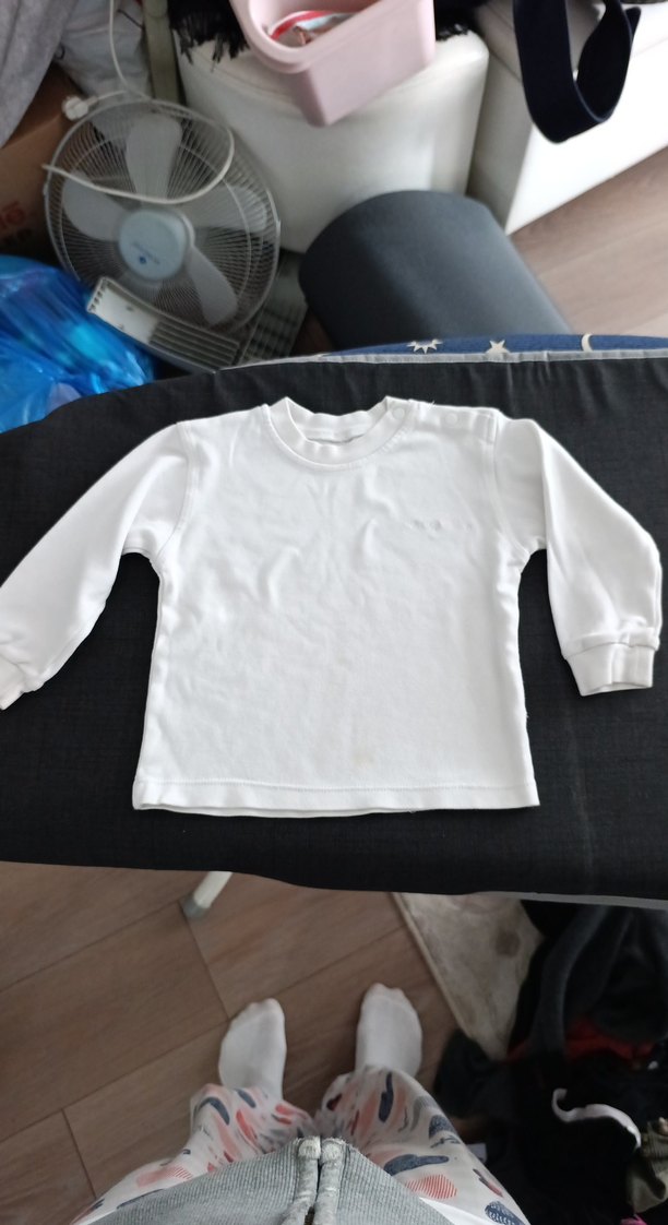 Yumuşak kumaştan yapılmış beyaz çocuk içlik, uzun kollu ve sade tasarımlıdır, rahat kullanım sağlar.
