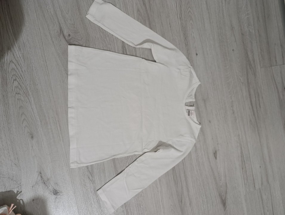Yumuşak kumaştan üretilmiş, sade tasarımlı beyaz uzun kollu çocuk içlik.