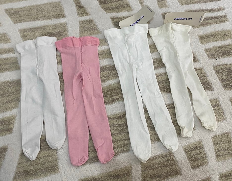 Pastel beyaz renkte, düz desensiz, yumuşak sentetik kumaştan yapılmış çocuk külotlu çorap. Hepsinin fiyatı