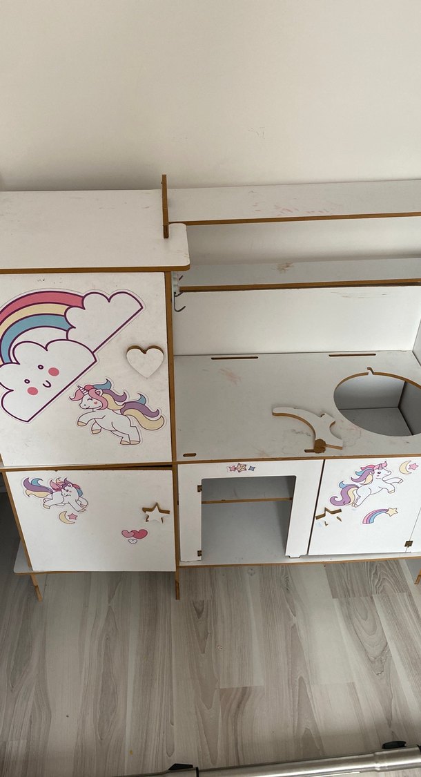 Beyaz Çocuk mutfak Dolabı Unicorn Motifli