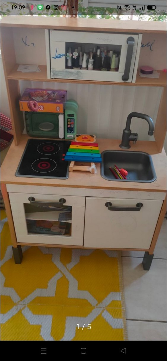 Ocak, lavabo, beyaz çocuk oyun mutfak seti. Açık renk ahşap çerçeve ve saklama dolapları bulunur. bütün kapıları çalışır durumda ,ocağın ışıkları yanmıyor veüzerinde kurşun kalem ile yazılar var.magaza fiyatı 9000 TL civaridir