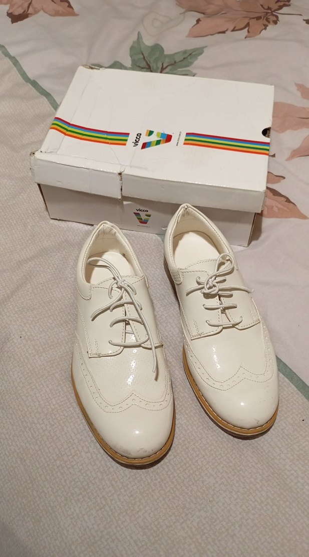 Beyaz, sade tasarımlı çocuk özel gün ayakkabısı, lastik tabanlı ve pastel tonlarda, klasik ve normcore tarza uygun.