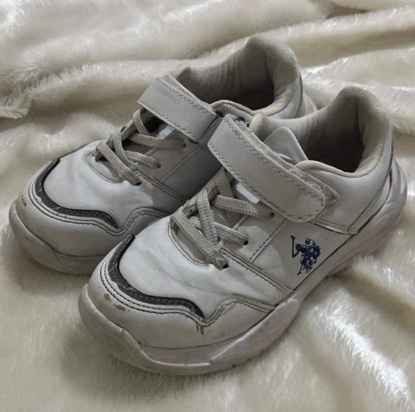 beyaz çocuk spor ayakkabısı, kolay giyimi sağlayan cırt cırtlı bant ve kauçuk tabanlıdır. Sokak stili için uygundur.