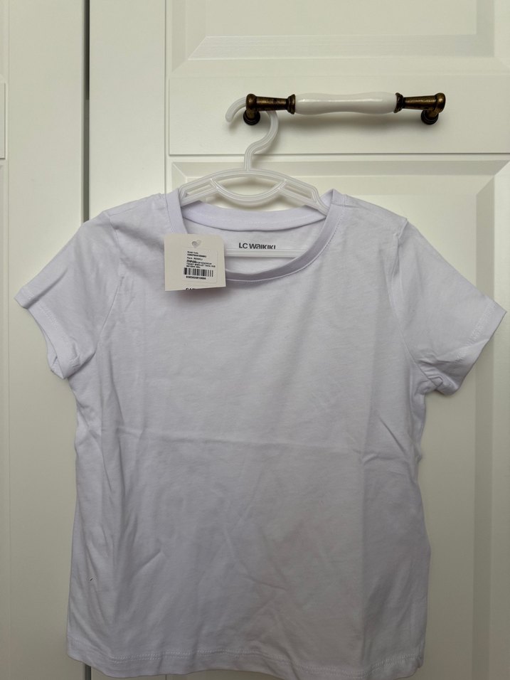 Pastel beyaz renkte, kısa kollu ve yumuşak dokulu çocuk tişörtü. Temel katman olarak kullanıma uygundur.