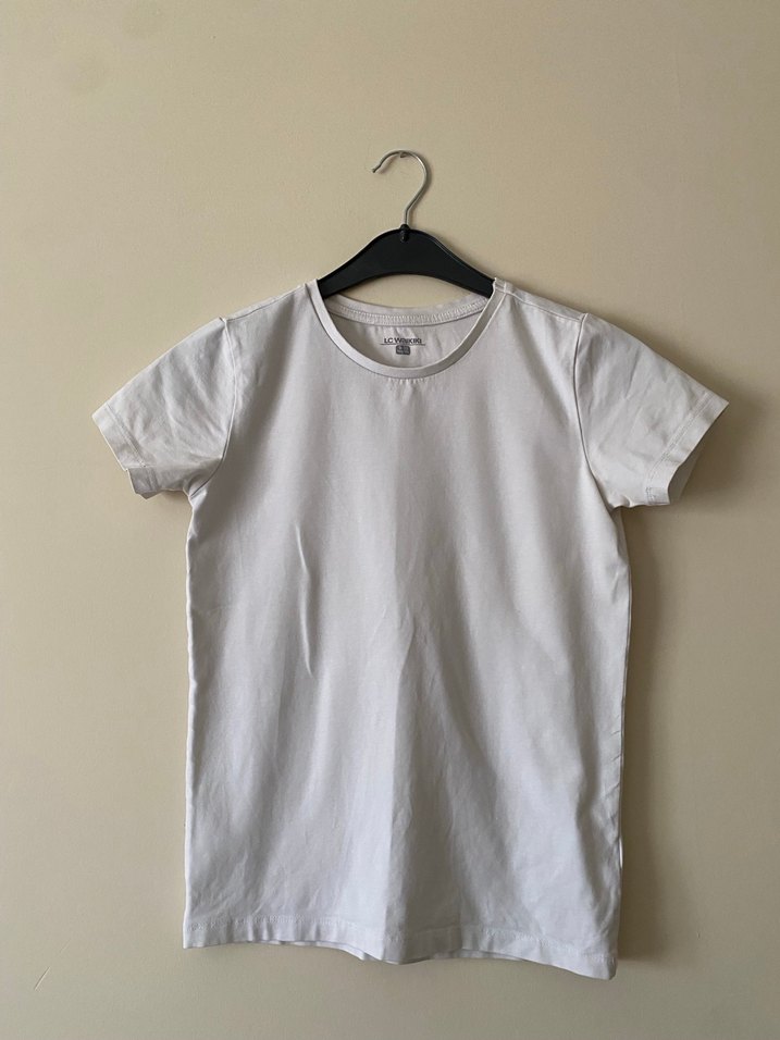 Kısa kollu, beyaz çocuk içlik tişörtü, yakasında gri ince detay bulunur. Yumuşak kumaştan rahat kullanım sağlar.