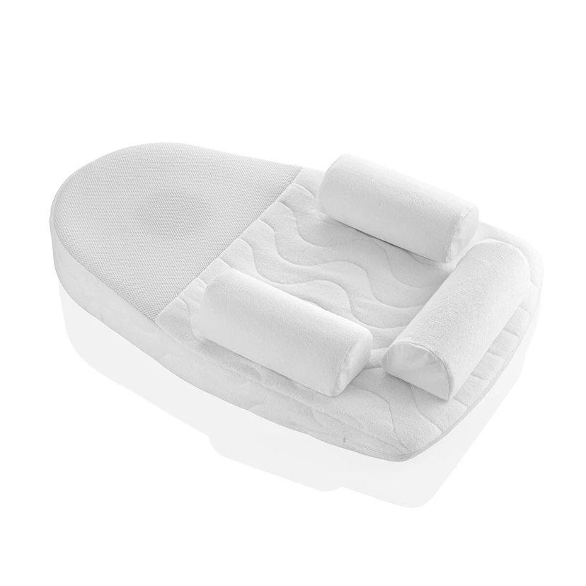 Yumuşak ve sıcak kumaştan yapılmış beyaz çocuk uyku destek yastığı seti, konfor için çoklu silindirik yastıklar ve şekilli taban içerir. ️