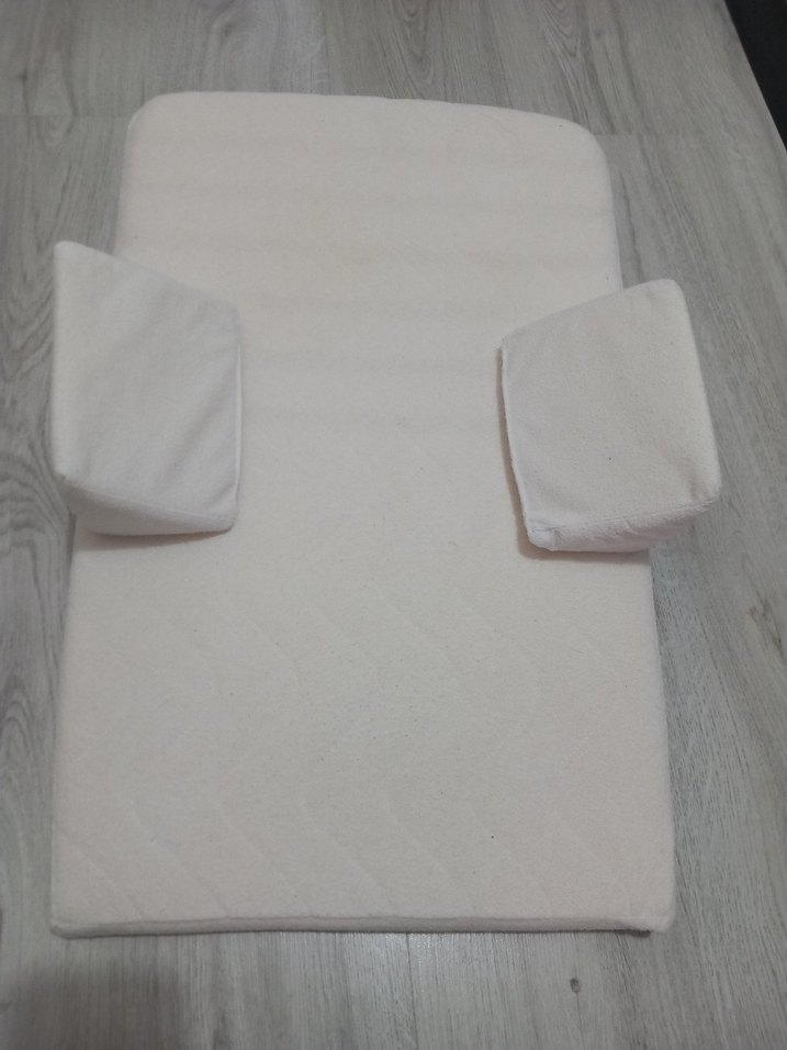 Çocuklar için yumuşak ve sıcak beyaz uyku minderi, iki yan destek yastığı ile rahatlık sağlar. ️