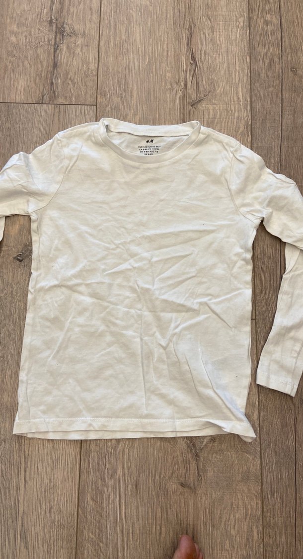 Yumuşak kumaştan yapılmış, rahatlık ve katmanlama için tasarlanmış beyaz çocuk uzun kollu atlet. Düz ve yuvarlak yakalı.