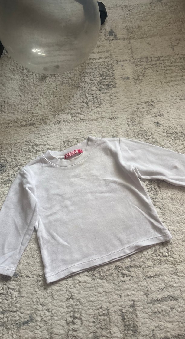 Yumuşak ve rahat kumaştan üretilmiş, desensiz beyaz çocuk uzun kollu içlik.