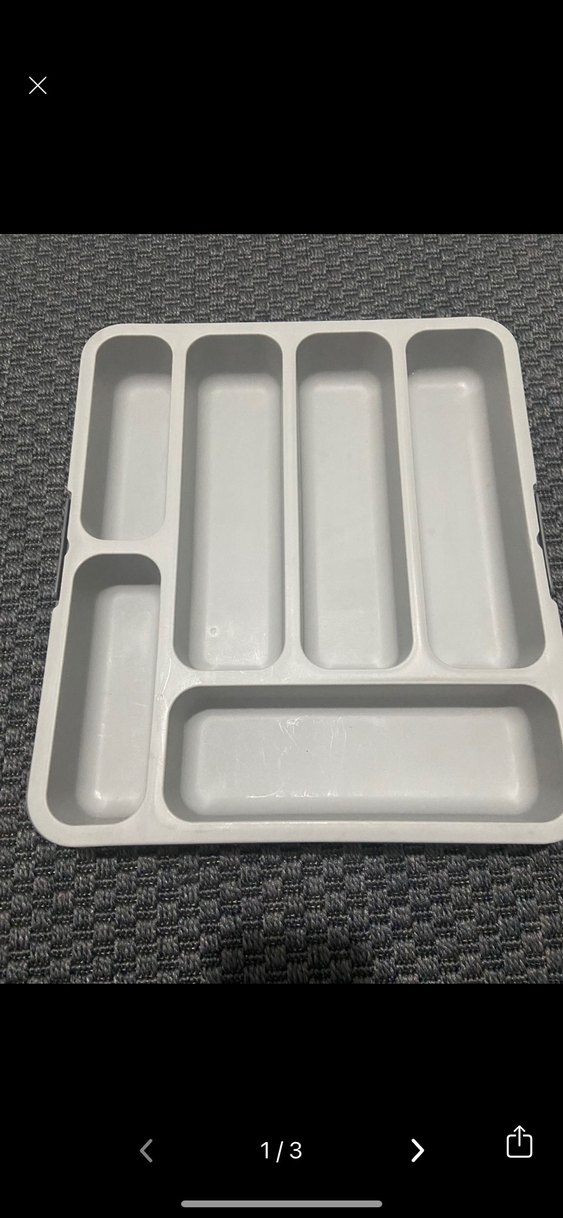 Beyaz renkte çok bölmeli çatal, bıçak ve kaşık düzenleyici. Dayanıklı yapısıyla çekmecelerde rahat kullanılır.
