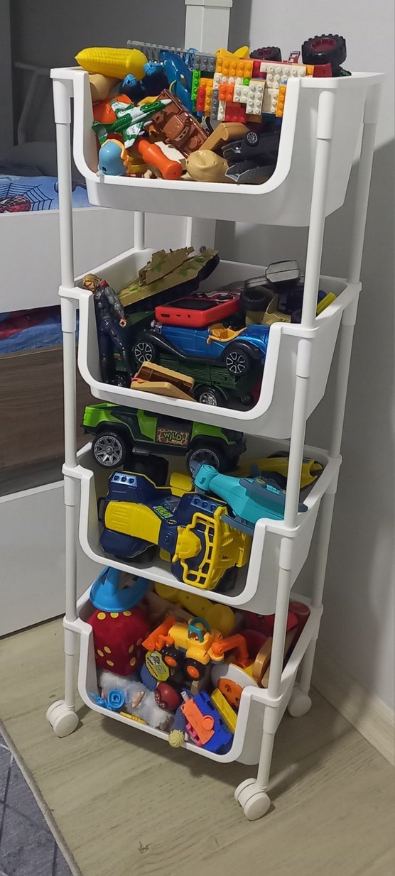 Dört bölmeli beyaz çok katmanlı dolap düzenleyici, oyuncak ve küçük eşyalar için uygun. Hafif ve kullanışlı tasarım.