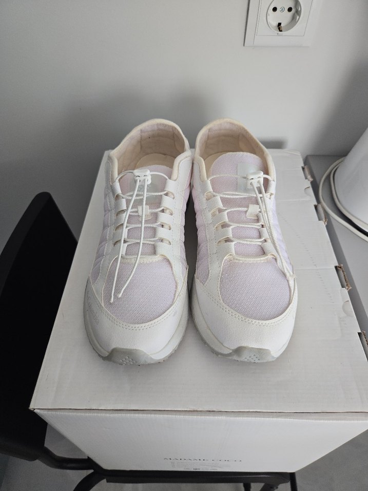 Beyaz spor (yürüyüş-koşu) ayakkabısı. Başka bir uygulamadan sıfır-etiketli olarak alındı, sadece 1 kez giyildi, büyük geldiği için satılmaktadır. Çok hafif bir ayakkabı olup, hiç bir kusuru yoktur.