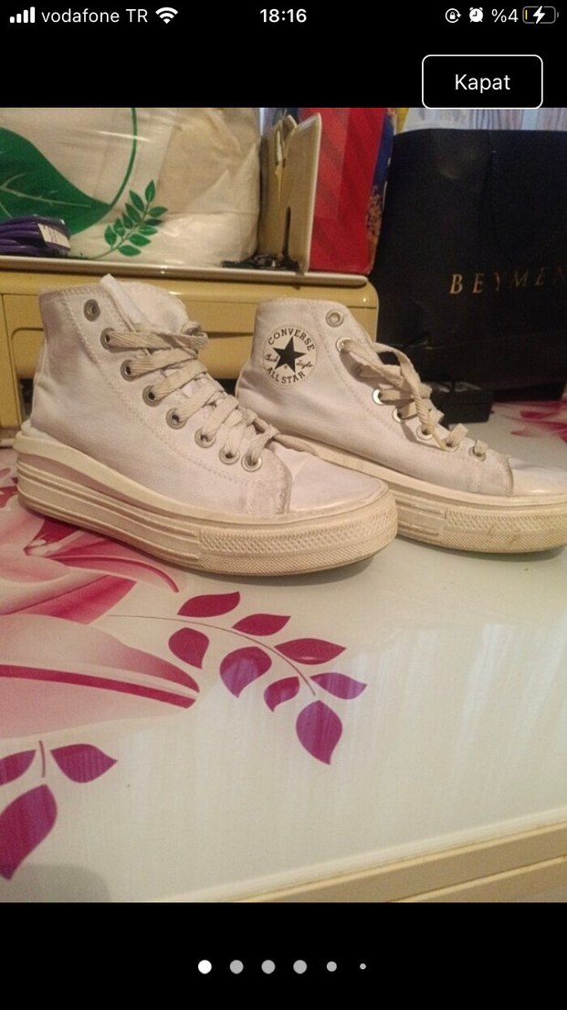 burdan almıştım 1-2 kez kullandim artık kullanmıyorum. defosu yok sadece beyaz olduğu için kirlenmeler mevcut ve bağcıkları yok ama alıp birlikte gönderebilirim, orijinal diye düşünüyorum.