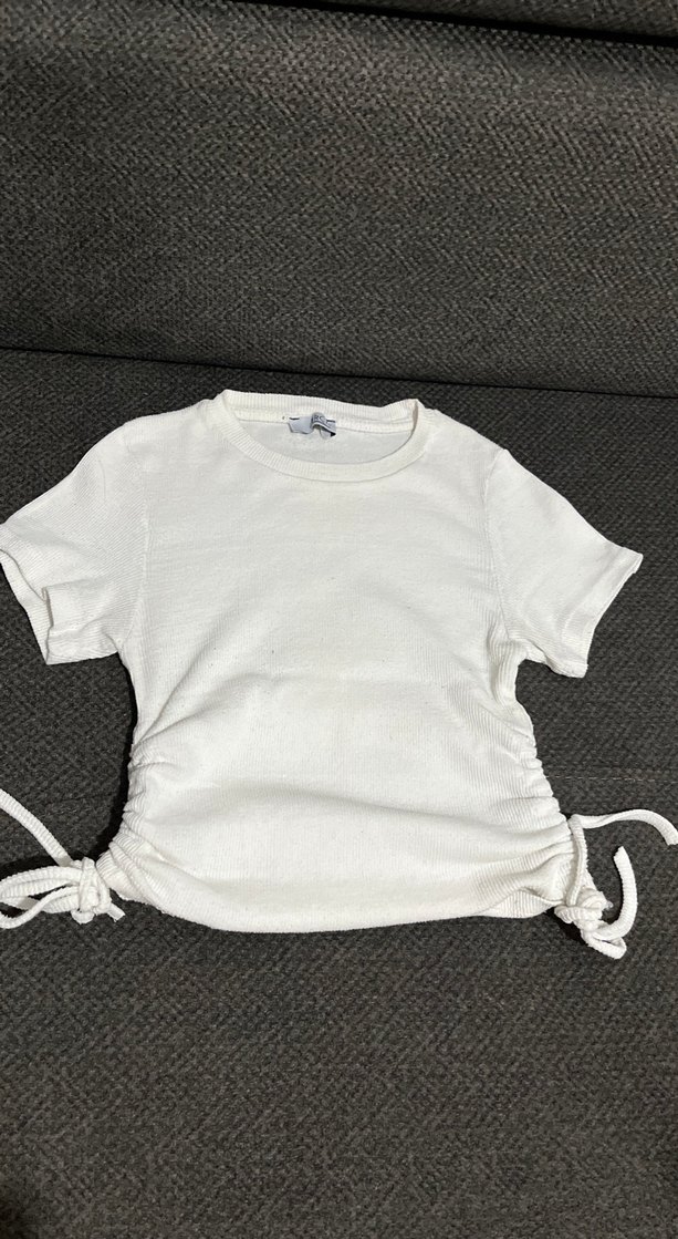 Beyaz yandan iplikli ayarlanabilir kısa kollu body