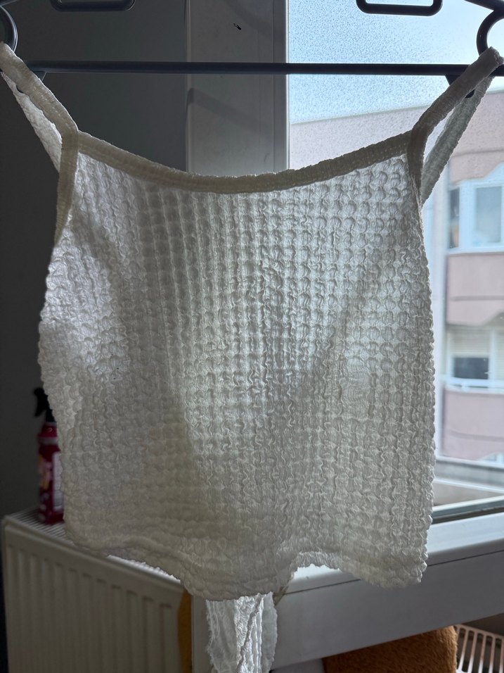 Yumuşak dokulu, beyaz renkte crop, konfor ve kullanışlılık sağlar.
