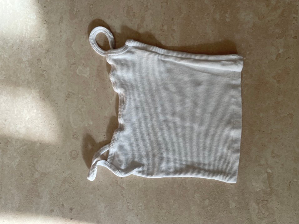 İnce askılı, yumuşak kumaştan beyaz çocuk atlet. Düz ve desensiz tasarım.
