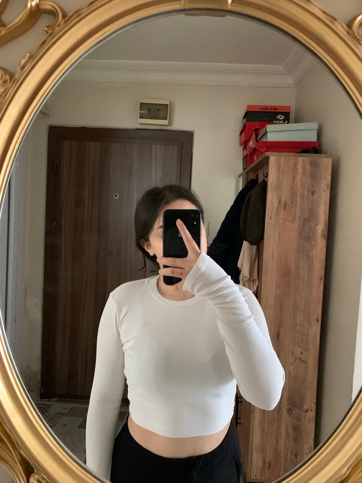 Beyaz crop badi bluz