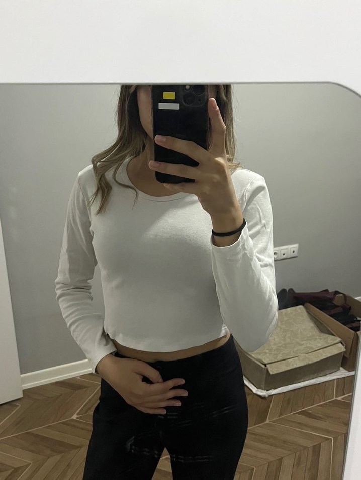 Beyaz Crop Bluz az kullanılmıştır. S beden 50 kiloyum. Koltuk altında sararma var onun dışında hiç bir sorunu yoktur. Şimdiden hayırlı olsun, güle güle kullanın.