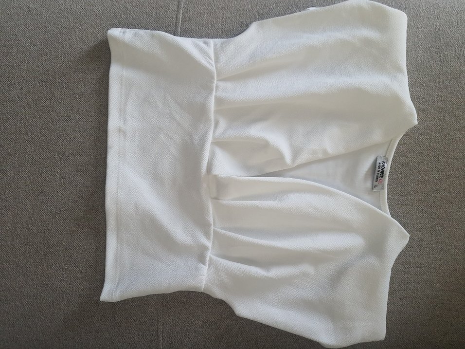 Beyaz renkte, tek renk, tekne yaka ve kısa kollu, şık crop bluz hiç giyilmedi.