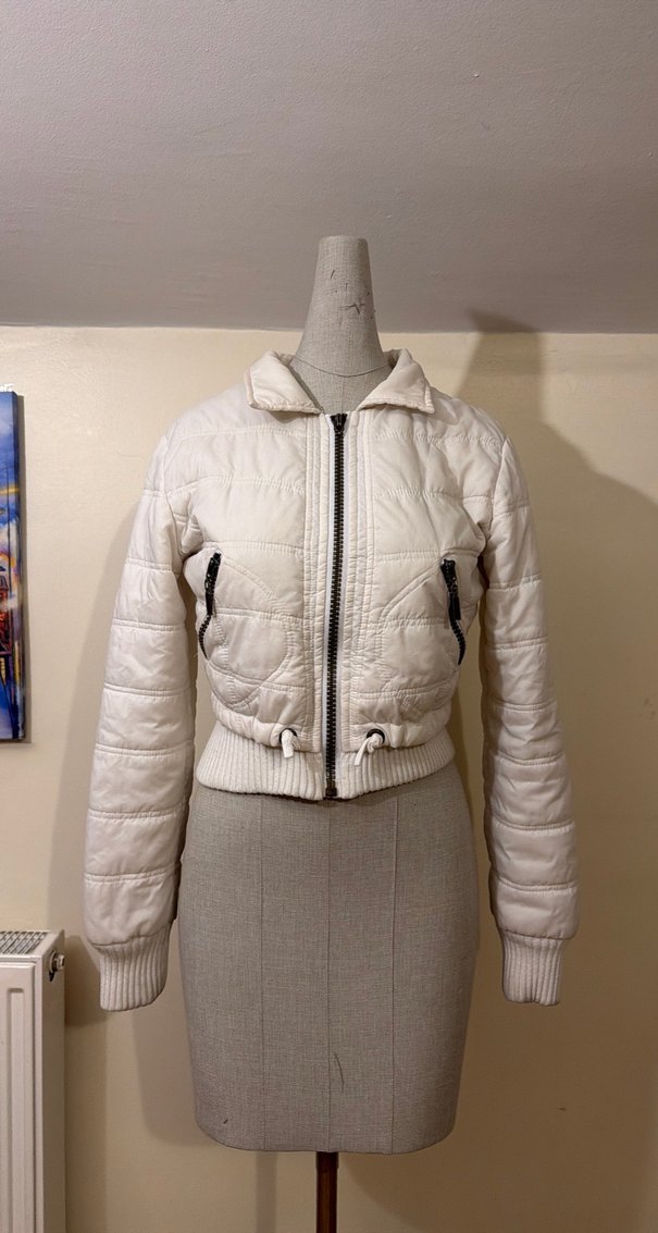 Beyaz Crop Kadın Mont