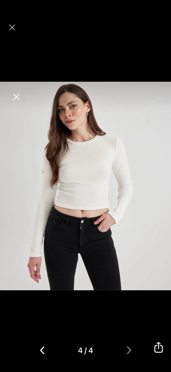 Beyaz crop top, uzun kollu ve yuvarlak yakalıdır. Pamuklu kumaştan üretilmiş olup, günlük sokak stiline uygun, vücuda oturan şık bir görünüm sunar.
