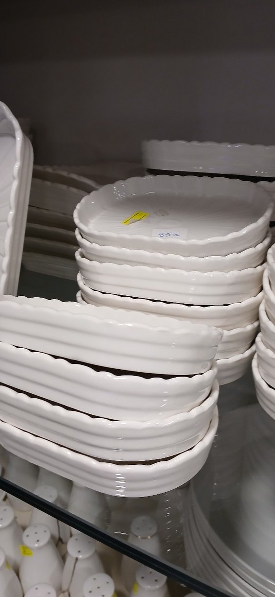 Dalgalı kenarlarıyla beyaz porselen tabaklar, yemek sunumları için uygundur. ️