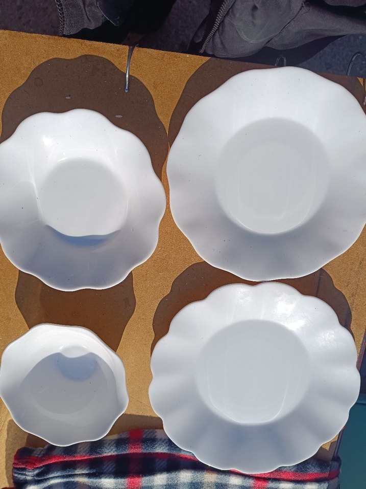 2 li alimda indirim npayi vardirr ❤️❤️❤️❣️❣️❣️❣️Farklı boyutlarda, dalgalı kenarlı beyaz yiyecek kapları seti. Pürüzsüz yüzeye sahip, çeşitli yemekler için uygundur. ️