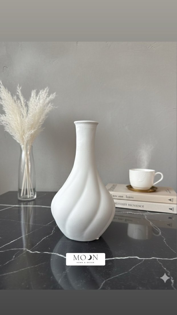 Beyaz seramikten yapılmış, dalgalı tasarıma sahip ve pürüzsüz yüzeyli vazo. Dekorunuza zarif bir dokunuş katıyor.