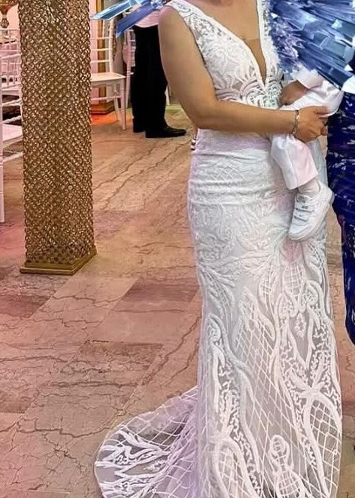 Beyaz dantel balık abiye