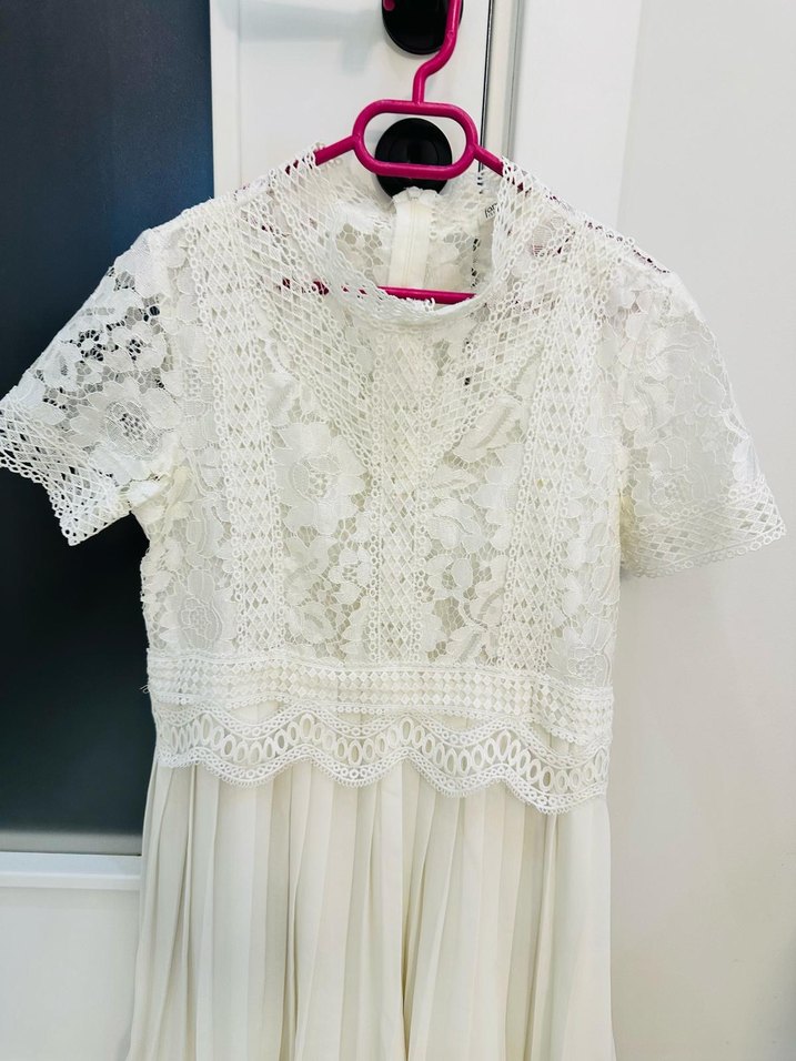 Beyaz dantel alev pile beyaz elbise