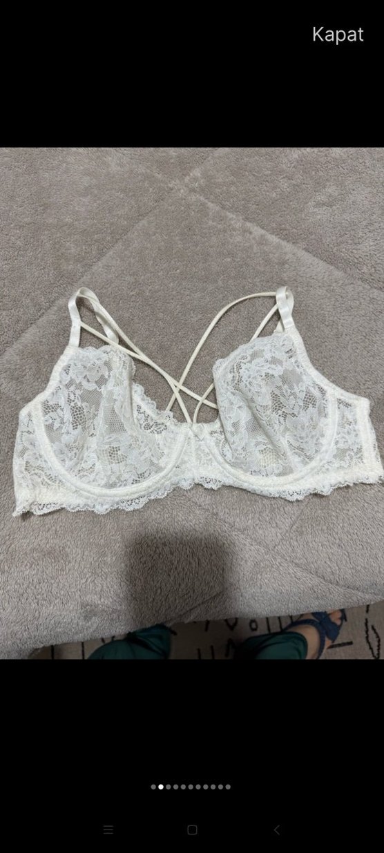 Beyaz dantel, rahat ve bohem tarzda, ince askılı ve desensiz bir bralet. ✨