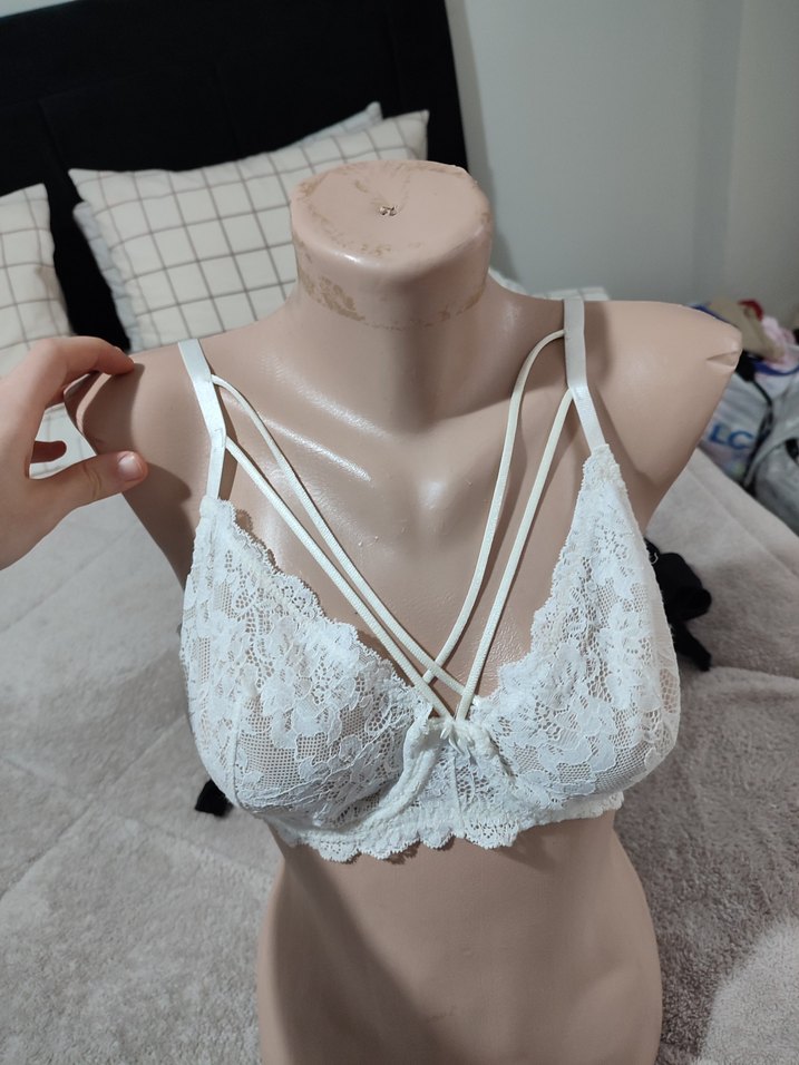 Beyaz dantel sütyen, bohem tarzda ince askılı ve midi boyda. Hafif ve rahat kullanım için uygundur.