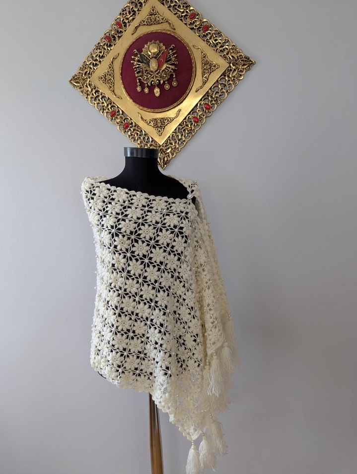 Beyaz Dantel Bohem Örgü Kadın Şal