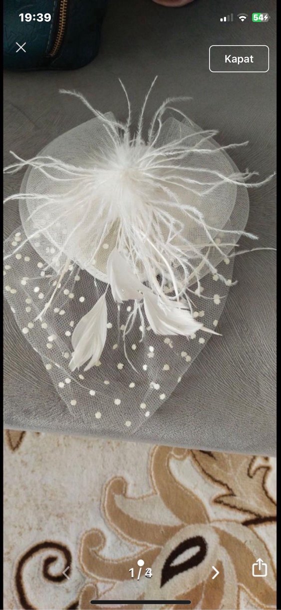 Beyaz dantel, tül ve zarif tüy detaylarıyla bohem ve avangart gelin aksesuarı.