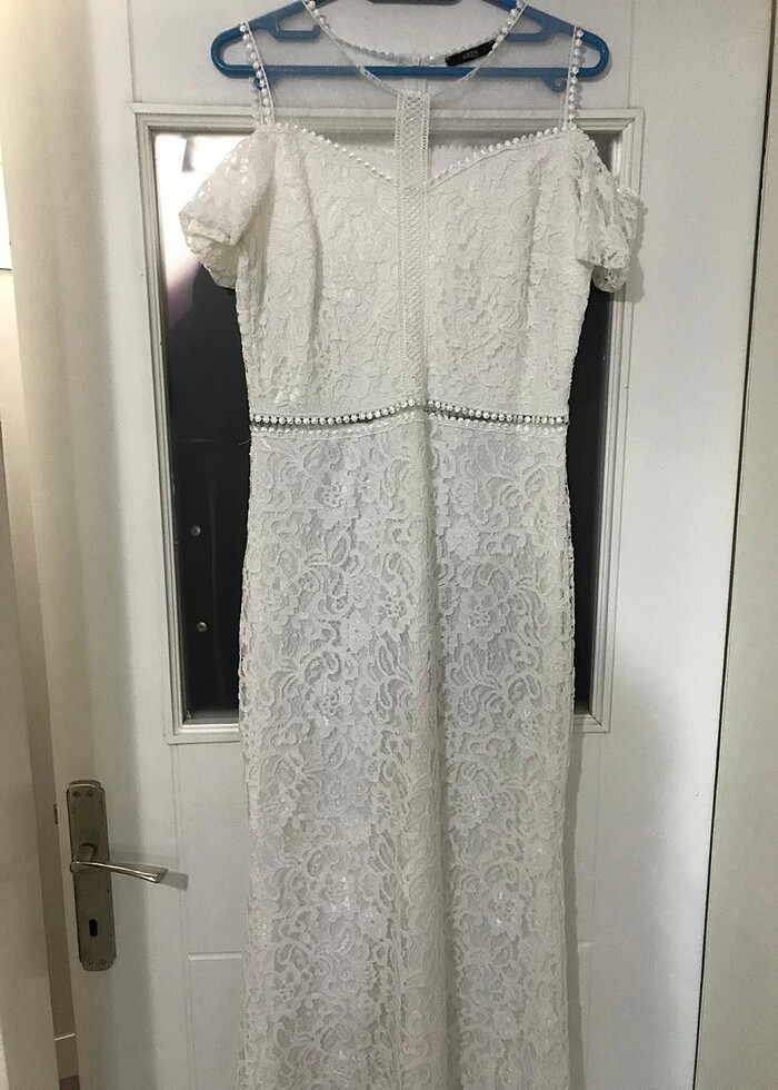 Beyaz dantel detaylı balık model elbise