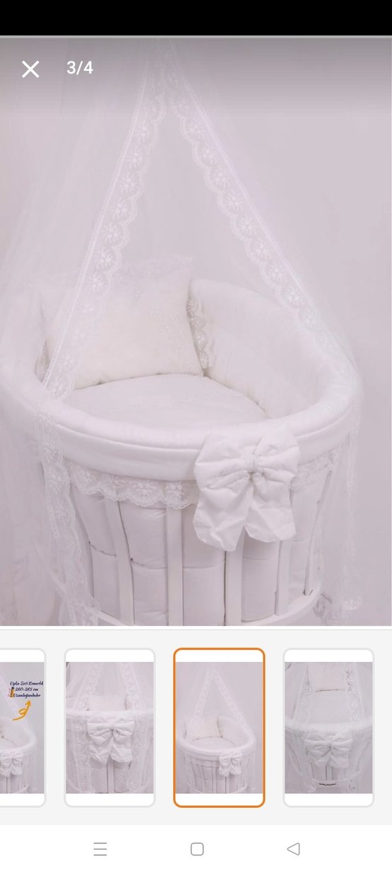 Yumuşak dolgulu beyaz bebek sepeti, dantel detayları ve dekoratif fiyonk ile konforlu bir tasarıma sahiptir. çok az kullanıldı evde iki adet beşik vardı bunda hiç yatmadı tertemiz duruyor. sadece örtüler satılıktir