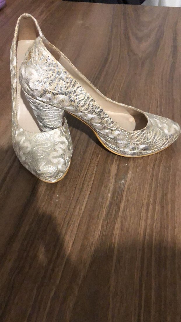 Beyaz Dantel Detaylı Blok Topuklu Abiye Ayakkabı