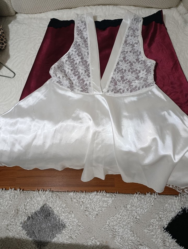 Beyaz Dantel Detaylı Bohem Midi saten gecelik
