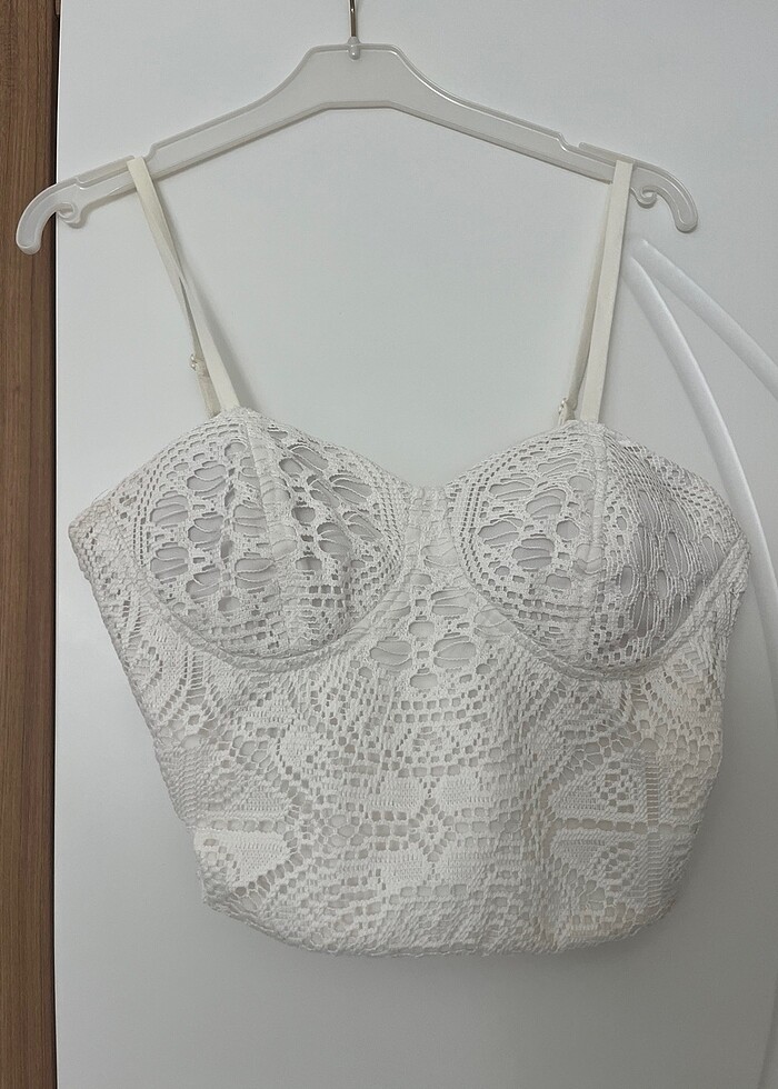 Beyaz dantel detaylı büstiyer