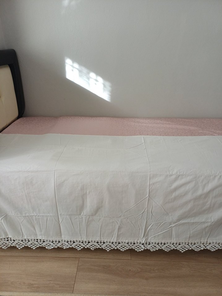 Beyaz renkte, düz desensiz yatak örtüsüdür. Alt kısmında ince dantel detayı bulunur, pastel tonlardadır. ️ölçüleri en 2.06 cm boy 100cm tek adettir iade kabul etmiyorum Bilerek alım yapınız