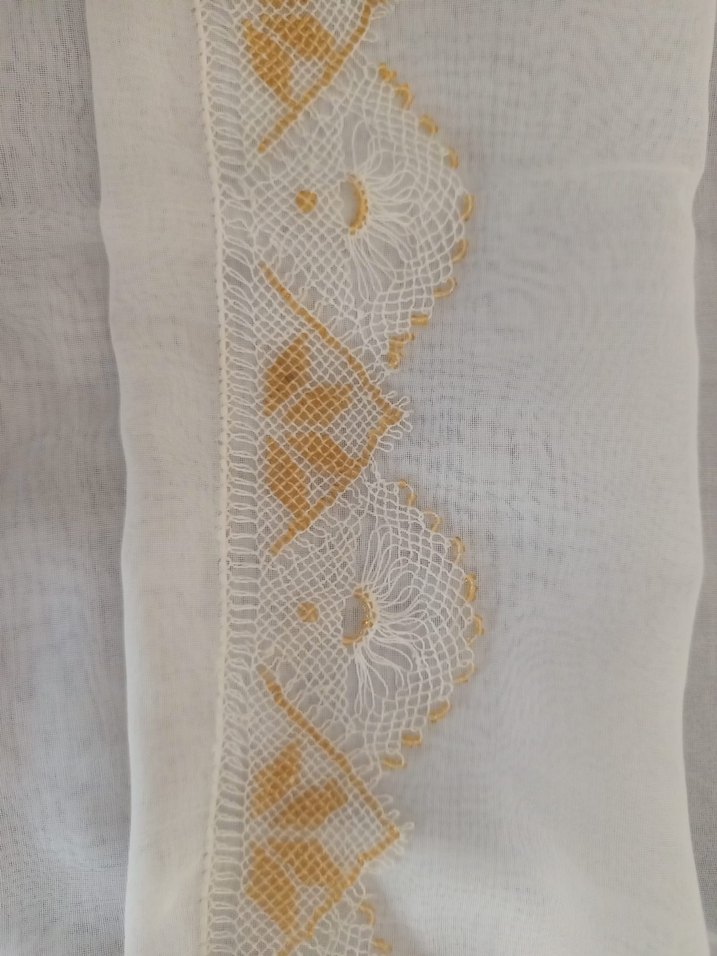 Yumuşak tekstil kumaştan yapılmış, kenarlarında zarif dantel detayları bulunan beyaz fular. Hafif renk ve bohem tarzıyla retro ve hippie stillere uygundur.