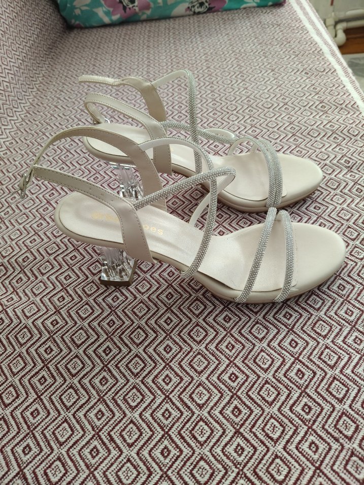 Hiç giyilmedi. Dantel detaylı ve yılan derisi desenli beyaz, sentetik kumaştan blok topuklu kadın ayakkabısı. Düğünler için uygun şık tasarım.