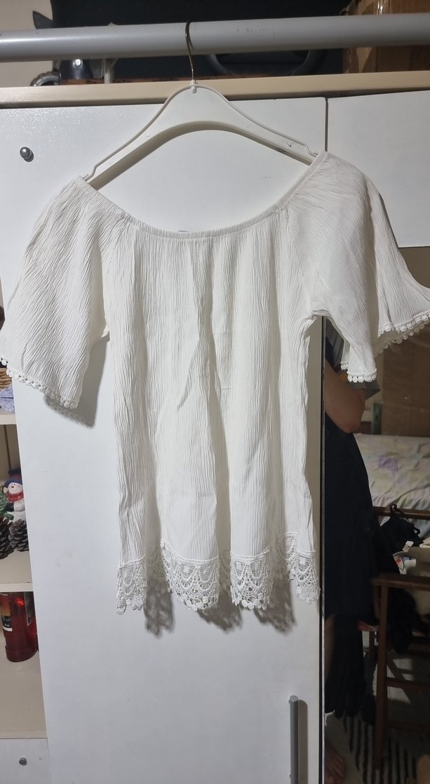 Beyaz Dantel Detaylı Kısa Kollu Kadın Bluz