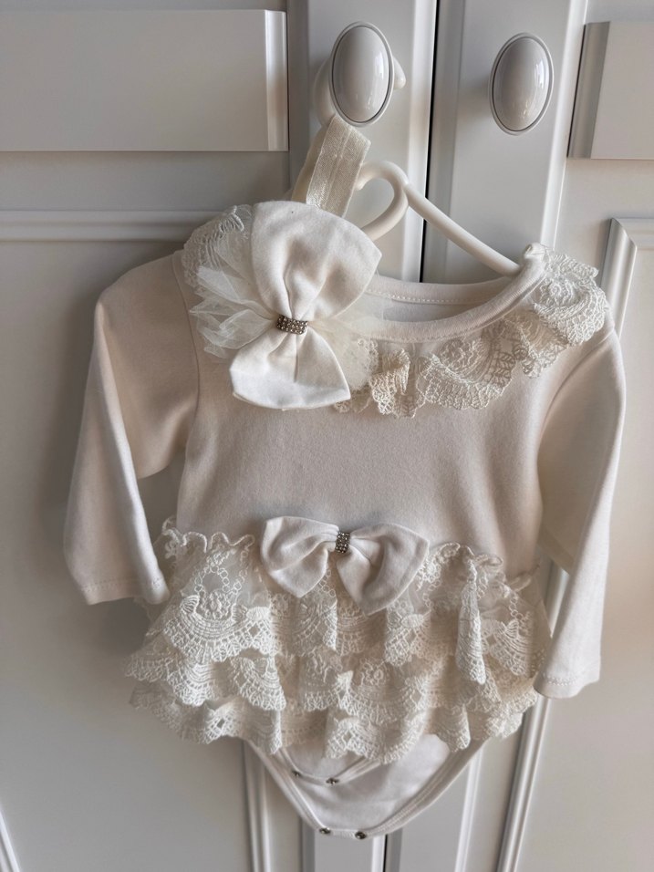 Beyaz Dantel Detaylı Kız Bebek badyli Elbise