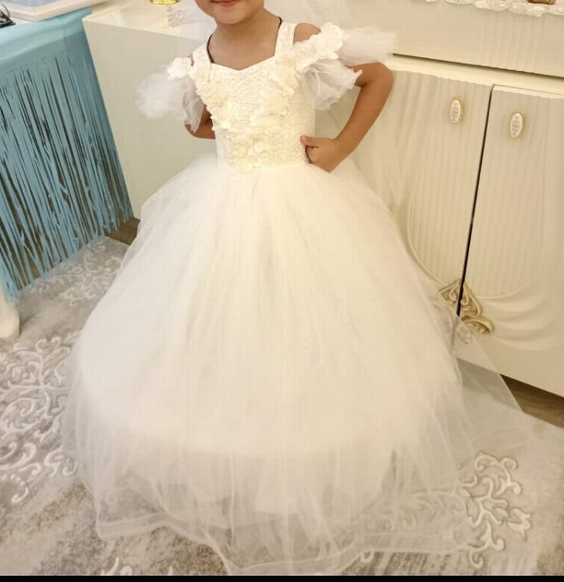 Beyaz Dantel Detaylı Kız Çocuk Abiye Elbise