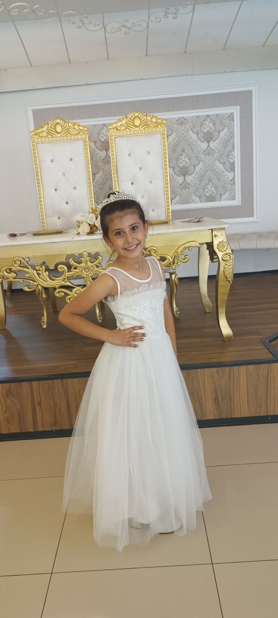 Beyaz Dantel Detaylı Kız Çocuk Abiye Elbise