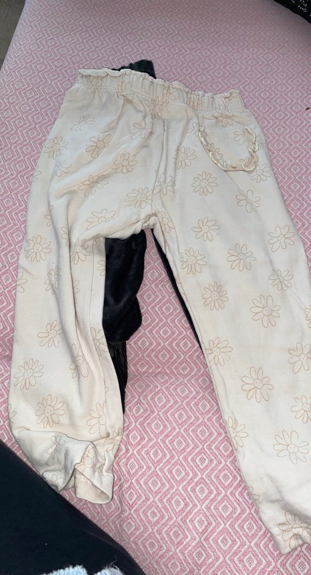Beyaz renkli, yumuşak ve rahat kumaştan yapılmış, çiçek desenli ve dantel detaylı kız çocuk taytı.
