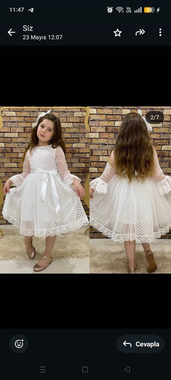 Beyaz Dantel Detaylı Klasik Kız Çocuk Elbisesi