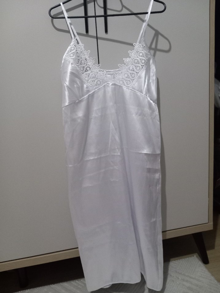 Dantel detaylı, askılı, beyaz saten ve parlak midi uzunlukta normal kesim gecelik. #saten #Gecelik Not: Dolap temizliği nedeniyle uygun fiyata bırakıyorum ✅ Kargo: Hızlı gönderim yapılır